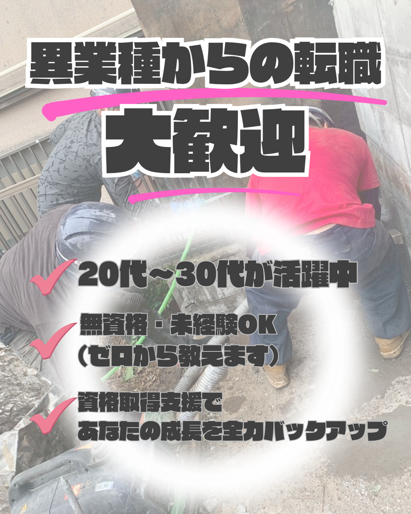 求める人材: 【応募資格】 ・普通自動車免許をお持ちの方 <歓迎条件> ・学歴不問!中卒、高卒、大卒も大歓迎 ・第二新卒も歓迎! ・未経験の方も歓迎 ・フリーター、仕事のブランクOK ・U・Iターン歓迎 ・幅広い年代の方が活躍中! ■□■□■□■□■□■□■□■□■□■□ <以下、資格/免許所有・講習受講の方優遇> ・建築物等鉄骨の組立て等作業主任者技能講習 ・足場の組立て等作業主任者技能講習 ・ガス溶接作業主任者講習 ・車両系建設機械(整地・運搬・積込及び掘削)の運転 ・車両系建設機械(解体用)の運転 ・アスベスト建築物の解体・改修工事における石綿障害の予防特別教育 ・特定化学物質等作業主任者技能講習 ・職長・安全衛生責任者教育 ・玉掛け技能講習 ・コンクリート造の工作物の解体等作業主任者講習 ・木造建築物の組立て等作業主任者技能講習
