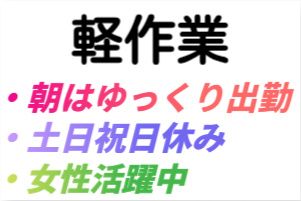コツコツもくもく軽作業は時間帯が選べる、土日祝日休み。週払いは満額支給。正社員登用制度あり