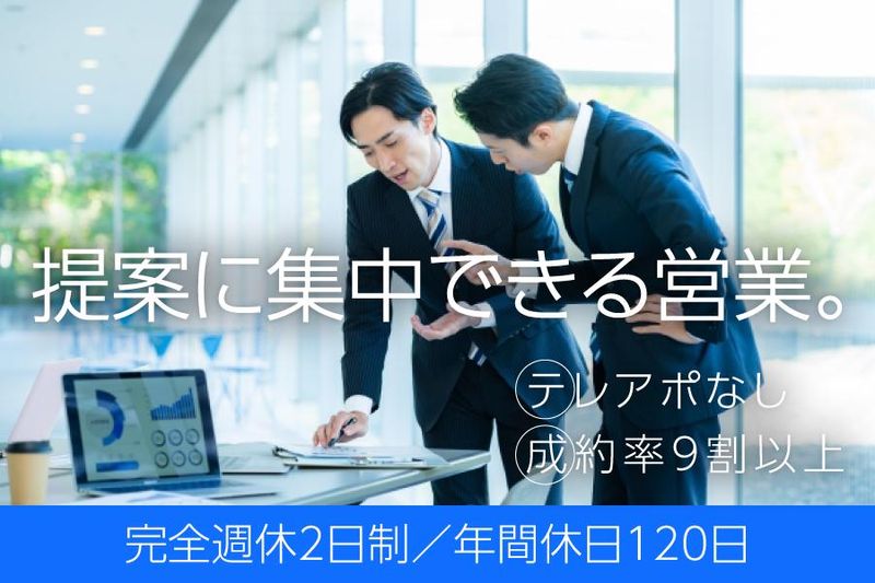 完全週休2日制/年間休日120日/成約率9割以上/ノルマ無し