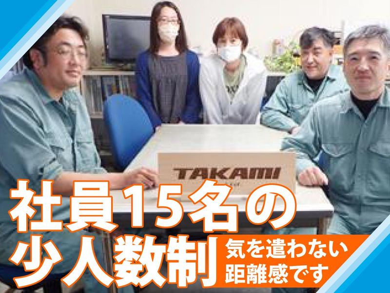 職場環境 タカミで働くからには、 「あの時は良かったけれど…」 という思いはさせません。 仕事・生活・収入の バランスを取りながら、 長く安心して 働き続けられる環境を 整えており、 ボーナスや手当、 退職金制度などの 福利厚生も万全です! 喫煙所:喫煙所あり(屋外)