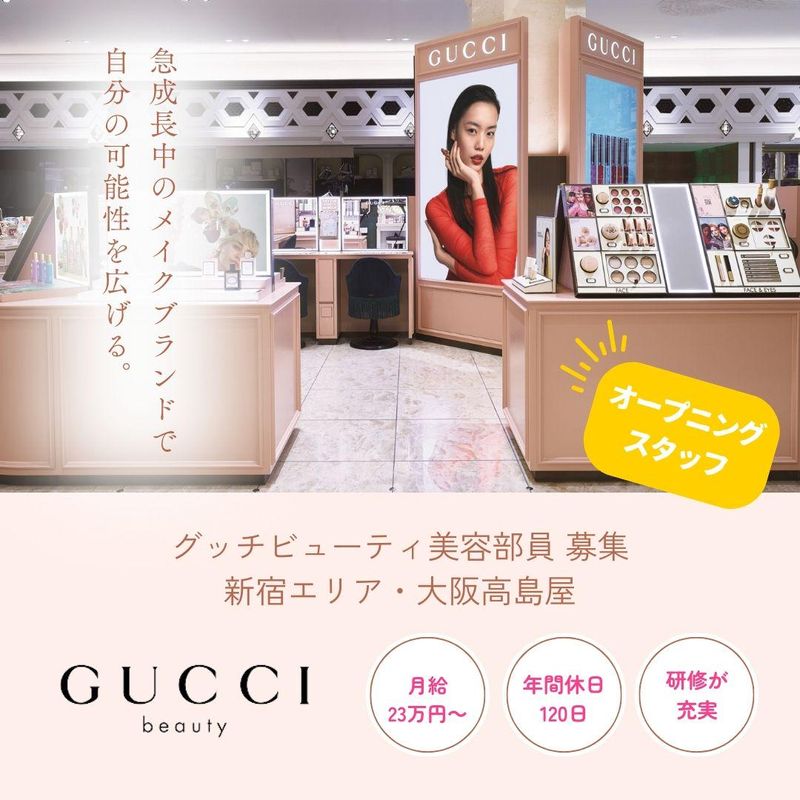 仕事内容 ⭐具体的なお仕事内容⭐ ビューティーアドバイザーとして、 百貨店や商業施設内にある 化粧品売り場にて下記をお任せします! *ー* ・お客様へのカウンセリング ・タッチアップ ・化粧品販売・商品提案 ・その他レジ業務 ・商品の在庫管理・入荷検査・陳列など *ー* ✨GUCCI Beauty *グッチ ビューティについて✨ グッチ ビューティは、一人ひとりが 自分らしさを表現するために開発された メイクアップ&フレグランスのコレクションです。 カラーやテクスチャー、 香りを思いのままに重ねて、 パーソナルで自由な美の創造を楽しむことができます。 *ー* ⭐その他のブランドも多数案件あり⭐ 詳しくは公式HPでもチェックできます! https://makescareer.gaiasign.co.jp/