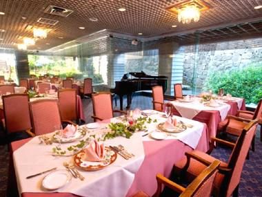 職場環境 姫路商工会議所の地下1階にある緑のガーデンと流れる滝に包まれたレストラン