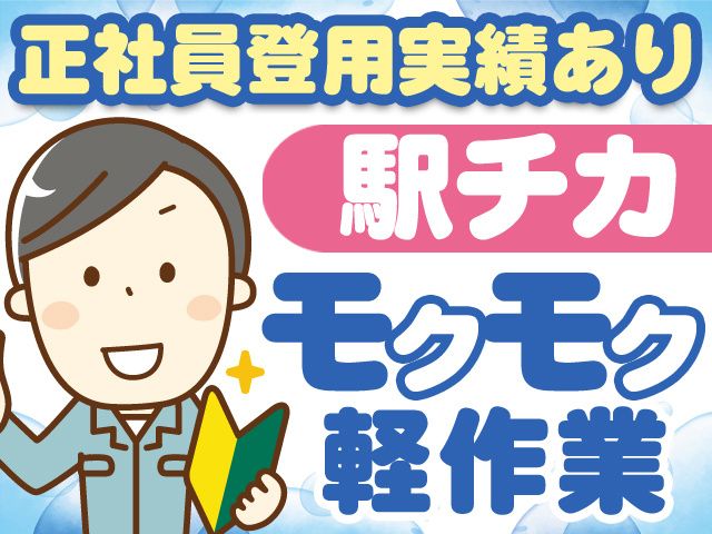 資格・経験 工場での勤務経験や、 軽作業が初めての方も大歓迎 <こんな方にオススメ> ・未経験から製造業で頑張りたい方 ・工場勤務に興味がある方 ・工場で軽作業の経験がある方 ・アルバイト・パートや派遣で働きたい方 ・土日祝休みの職場が良い方