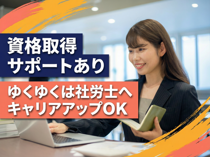 仕事内容 未経験から専門スキルを 身に付けるチャンス!! ●専門・短大卒以上 ●年間休日121日、土日休み ●残業ほぼなし、月平均10時間程度 ●昇給・賞与など福利厚生充実 ●未経験からのチャレンジ歓迎 ●資格取得支援で将来のキャリアも抜群 ●車通勤可能、遠方の方も歓迎 ―――――― 仕事内容 ―――――― 社会保険労務士をサポートする 事務業務をお任せいたします。 ◆社労士サポート ・給与計算業務 ※わかりやすい専用システムです ・社会保険、雇用保険などの電子申請 ・慣行先様への訪問業務 ・役所への書類提出業務 ◆事務業務 ・郵送業務、書類のファイリング ・電話対応業務 ・事務所通信作成のお手伝い ・提出書類をPDFファイルへ変換、保管 ・その他事務業務 業務は多岐に渡りますがどれもシンプル。 スグに覚えられますのでご安心ください。 当事務所は担当制でお客様を対応します。 基本的には社労士がフロントに立つため、 指示を受けながら業務をサポートします。 ――――――― 入社後は… ――――――― 先輩スタッフが丁寧にお教えします。 世話好きで優しいスタッフが集まっており、 気になることや疑問も聞きやすいです。 段階を踏んで教えますのでご安心ください。 将来社労士を目指している方も大歓迎。 試験勉強などもアドバイスいたします。 ―――――――― スキルアップ ―――――――― 社会保険労務士事務所で働くため、 一般企業よりも専門的な労務知識を 学べるのが大きなポイントです。 【給与計算】【社会保険】など、 人事労務事務として成長する上で 必要不可欠な知識が身につきます。 ―――――――――――― ワークライフバランス ―――――――――――― 年間休日121日で土日祝休みのため、 仕事とプライベートを両立しながら 長く成長を目指せるのが特徴です。 月残業平均も10時間以内と少なめです。