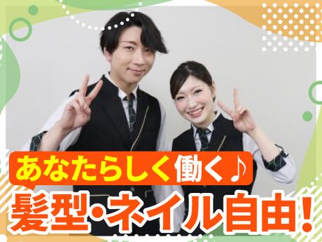 シフト制 勤務時間 (遅番)17:00~24:00(休憩1h) *授業やサークル、プライベートの予定など、お気軽にご相談ください♪ *早番の時間帯、学生活躍中♪