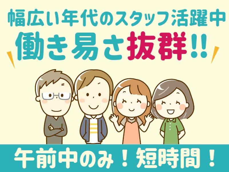 仕事内容 >>新工場設立に伴う新規募集<< \午前中のみ♪12時までのお仕事!/ 家事と両立しやすいカンタン盛り付け作業♪ 「子どもを送り出した後の時間だけ働きたい」 「扶養内でムリなく働きたい」 そんな方にピッタリ◎ 【お仕事内容】 あらかじめ調理されたおかずを、 器に入れるだけのシンプル作業です。 作業台の上に置かれた 軽いプラスチック容器から 決まった量を取り分けていきます。 ● 包丁作業なし! ● 火を使う作業なし! ● 盛り付け担当は2種類だけ! 難しい作業はありません◎ 未経験の方がほとんどです♪ ー <社員登用制度あり> 「子供が大きくなったら長い時間働きたい」 「ゆくゆくは正社員を目指したい」 そんな方も大歓迎です◎ お気軽にご相談ください♪ ー・ー・ー・ー・ー・ー・ー・ー・ー