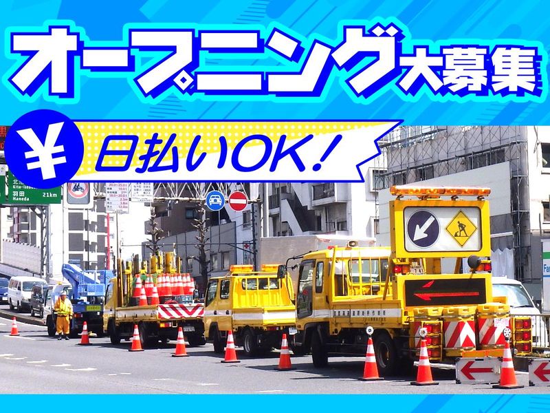 仕事内容 警備部新設!オープニングスタッフ募集! <仕事内容> ・高速道路の車線規制時に必要なコーンや看板の設置および撤去 ・規制内への車両流入流出の管理、通行車両の監視、規制内巡回 ・回転灯・LED看板搭載の特殊車両や発炎筒を使用した交通規制 ・一般道路での同様の業務や交通誘導業務もあり <働き方は自分のペースで自由に> ・「週1日」からの勤務OK! ・「週5日」フルで働きたい! ・Wワークで「週2~3日」など可能なシフトで出勤OK! ・急な出費があるからガッツリ働きたい! <日払いOK> ・気軽にご相談ください! <チーム体制> ・1チーム2~8人で作業することが多いです ・未経験の方が多いですが、チームでの仕事なので安心して始められます