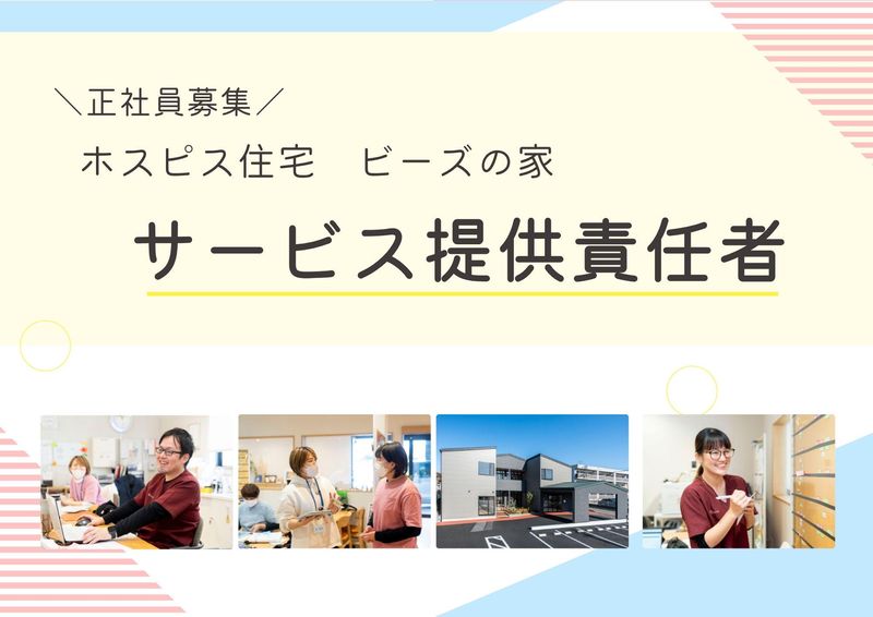 求めている人材 ■下記のいずれか必須 - 介護福祉士 - 介護支援専門員 ●必須スキル いずれか必須 - 訪問介護の実務経験(3年以上) - サービス提供責任者の経験 (算定理解・加算管理・計画書作成やモニタリング作成等実務経験) - リーダー/マネジメント経験(業界問わずチームを牽引・まとめた経験) - 新人育成・OJT経験 ■ビーズの家の想いに共感して頂ける方 ■PCスキル/記録・請求システムはワイズマンを利用しています。 <歓迎> -介護支援専門員(ケアマネ)資格 - 施設立ち上げの経験がある方 - 業務のクオリティ向上や生産性向上に意欲が持てる方