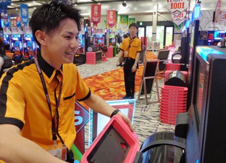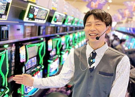 仕事内容 パチンコ店の業務全般や簡単なお掃除をお任せ!困ったことがあったら先輩がすぐにフォローします! パチンコの箱や玉の交換、 スロットのメダル回収や 景品交換業務をお願いします☆ ほとんどのスタッフが未経験からのスタート! 先輩がついて業務を教えてくれるので安心☆ 屋内原則禁煙(喫煙室あり)のため、たばこの煙や、 においが苦手な方も働きやすい環境になりました☆ 勤務時間内に休憩もちゃんと取れますよ♪ 経験は問いません!フリーターや学生など、様々なスタッフが活躍しています。扶養内での勤務も可能ですよ。 勤務時間の融通が利くので、 子育て中の主婦(主夫)さんや Wワークをしたい方にもオススメ。 曜日や働き方など、 シフトの希望には柔軟に対応いたします。 週1日~もOK! 20代~30代のスタッフが多く活躍中♪ もちろん学生バイトさんも多数、活躍中です☆ バイトデビューも大歓迎☆ 不安な場合はお試しで1ヶ月間の短期勤務もOK! 車やバイクでの通勤OK。通勤手段の選択肢が広がります。制服貸与もあるので服を汚す心配もありませんよ。 お正月やGW、お盆などの期間に 規定日数勤務で、1~2万円程度のボーナス支給あり! 学生さんの夏休みや冬休みなどの 長期休暇にガッツリ稼いじゃおう★☆ 座学で接客マナーや遊技台について学んだり、 マニュアル確認やロールプレイングなど 研修で詳しく教えて貰えます! 分からないことはその場ですぐ聞けますよ♪ 店内の賑やかさにも負けないくらい、明るく元気なスタッフ達。個性を活かして自分らしく働いています。 店長もスタッフ同士も和やかに話している、 アットホームで仲の良い職場。 何か困ったことがあったら、 先輩スタッフがすぐフォローに駆けつけるなど、 チームワークも抜群です! プライベートも仕事も充実間違いなし☆★