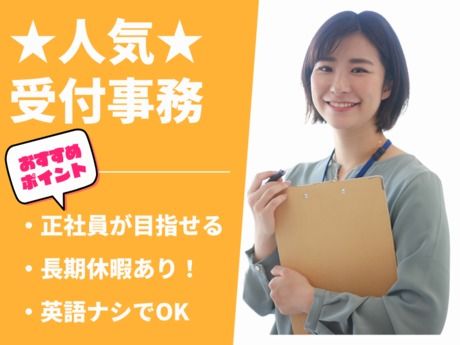 仕事内容 \ここがポイント/ ★正社員を目指せる紹介予定派遣! ★土日祝休み&長期休暇あり◎ ★受付・事務+イベント企画も♪ *・。・。*・。・。*・。・。* <仕事内容> \レンタルオフィスの運営サポート/ 受付・事務・施設管理など、 オフィス運営を支えるお仕事です♪ ◎来客・電話の応対 ◎会議室へのご案内やドリンク提供 ◎データ入力、備品手配、郵便対応 ◎コピー機の準備や請求書チェック ◎新規顧客の入居準備サポート ◎無人オフィスの見回り業務 ◎社内イベントや交流会の企画運営 ◎海外チームとの連携(翻訳アプリ使用OK) お客様とのやりとりも多く、 事務だけでなくコミュニケーション力や 企画力も自然と身につきます♪ ★英語が苦手な方も安心! 翻訳アプリで対応できる環境です◎ ★最初は丁寧な研修あり! 先輩のサポートも受けながら 少しずつ業務に慣れていけます♪ ★完全週休2日制でお休み充実! プライベートも大切にできます♪ ※就業後の業務変更はありません◎ 安心して長く働ける職場です! *・。・。*・。・。*・。・。*