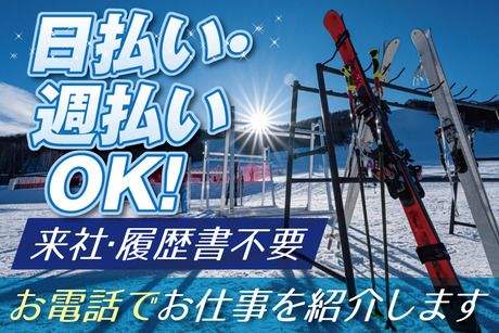 仕事内容 ■シーズン到来!スキー・スノーボード用ウェアの販売 スキー・スノーボード用品店での 接客販売をおまかせします。 ウィンタースポーツの可愛い商品が豊富です◎ <お仕事内容> ・コーディネートのご提案 ・試着のご案内 ・商品の品出し、陳列 ・袋詰め ・レジ対応など ■未経験OK◎髪色自由&ネイルOK!20代・30代の女性活躍中☆ どういう風に接客すればいいかなど、 イチから丁寧にお教えします。 お仕事中は先輩スタッフがそばにいるので、 分からないことがあってもスグに聞ける環境です◎ 安心して始められますよ! 「スキーやスノボが好き」 「人と話すことが好き」 という方にはピッタリです♪ 服装は上着だけ貸与で、 パンツスタイル&スニーカーなら私物でOK! 髪色・ネイル・ピアスも自由なので 自分のスタイルで働けます! ■急募!短期でサクッと稼げる!週4日~&1日6h~OK◎ 勤務曜日は相談OK! 時間帯は11時~22時の間で選べるので、 あなたのライフスタイルに合わせて働けます! 「2月末までの短期のお仕事を探している」 「今すぐ働きたい」 そんな方はまずはご応募ください! 年末年始も稼働しているので、 2025年内からでも働き始められますよ♪ ■来社&履歴書不要!電話でお仕事のご紹介が可能です 応募後、まずはこちらから電話でご連絡いたします。 その際にご都合が良い日時をお伝えいただければ その日時に改めて電話で連絡いたします。 家事の合間や仕事が休みの日など、 あなたの都合のよいタイミングをお伝え下さい。 お電話で業務内容の説明やあなたの希望をおうかがいしたうえで 希望のお仕事をご案内いたします。