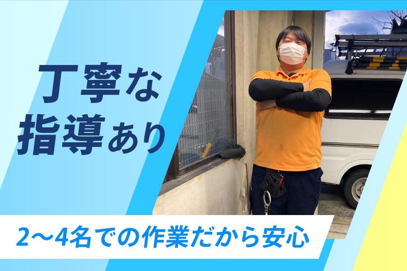 仕事内容 <POINT!> *社会人デビュー/第二新卒/ブランクOK *未経験でも月給27万円~しっかり稼げる! *面接1回/即日勤務OK/交通費支給 *昇給あり/賞与あり/17時退社でラクラク *丁寧な研修制度あり *休憩60分/月7日~休み - 未経験でも安心してはじめられる マンションの排水管清掃業務! コツコツ作業が得意の方には とても働きやすい環境です。 <仕事内容> ・マンション内での排水管の清掃 ・高圧洗浄ホースで配管の汚れや詰まり除去 *安全対策は徹底! ・・・など 2名~4名のチームで作業! 1日15件ほど・1件10分程度で作業もラクラク。 <1日のスケジュール/例> 09:00~ 現場到着・作業開始 12:00~ 昼休憩 13:00~ 作業再開 16:00~ 作業終了 17:00 帰社!お疲れ様でした! *現場によって異なります。 *夜間の仕事はありません。 安定したリズムで働いていただけます! 研修では先輩社員が 一連の業務を丁寧にお教えします。 清掃で使用する高圧洗浄機も 使い方を教えるので心配なし! どなたでも安心して取り組めます。 頑張りは昇給&賞与で還元! 誠実な姿勢で仕事に取り組んでくださる方に 応えられる環境です。 面接時には会社のことや社員のこと、 働き方、お休み、etc・・・ 気になることはすべてお答えします! - <職場についてご紹介!> ざっくばらんに話せる気のいい先輩が 揃っているので、風通し良好! 一人前になれるよう、全員でサポートするので 安心して飛び込んできてください! シニア世代など未経験スタートの 社員が多数活躍中! イチから学べる環境を整えているので、 「清掃業がはじめて」 という方から 「人のために頑張ることが好き」 という方まで、 どなたでも活躍できますよ。