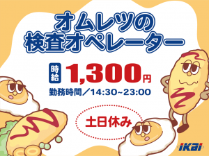 インフォメーション ▼遅番×土日休み▼月24万も可!!早起きが苦手な方にオススメ!お昼からスタートのお仕事です!未経験の方でもチャレンジしやすい食品工場でのお仕事! イカイプロダクトは、製造業で働きたい方の 就職サポートをしている人材会社です。 取り扱い求人が多いので、 「自宅から近い場所で働きたい」 「パートやアルバイト」で仕事を 探している方にもおすすめ。 ハローワークに掲載していない 案件も沢山取り扱っています。 気軽な気持ちで、ぜひお問い合わせくださいませ。 アピールポイント <<寮情報>> ▼家電付き1Rのレオパレス完備 ▼初期費用不要! ▼完備品 キッチン・お風呂・トイレ 冷蔵庫・電子レンジ・洗濯機・TV・エアコン等 ⇒完備品のレンタル料:0円!! ▼寮費 40,000~55,000円/月 ※光熱費・水道代等ライフラインは個人契約・個人負担となります。