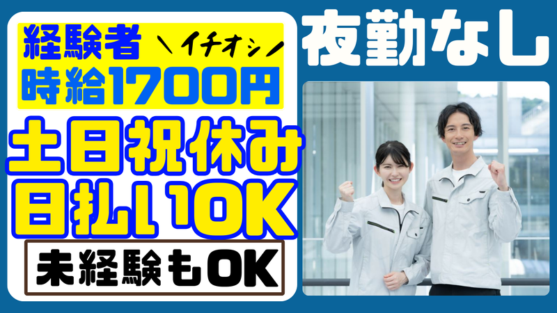 【有資格・経験者:時給1700円】日・週払いOK/土日祝休み