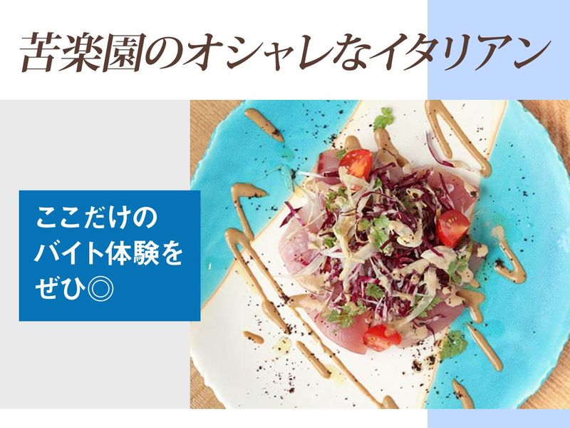 求めている人材 ≪こんな方にオススメ!≫ ■初バイトOK・未経験OK ■授業や部活と両立したい学生さん ■家庭と両立したい主婦(夫)パートさん ■接客や人と話すのが好きな方 ■イタリアンなど食に興味のある方 プライベートも大切に働けるので 「子供のいないお昼だけでも」 「授業の終わる時間に合わせて働きたい」 「終電の時間がある」 「土日は昼も出勤したい」 など希望はお気軽にご相談ください。