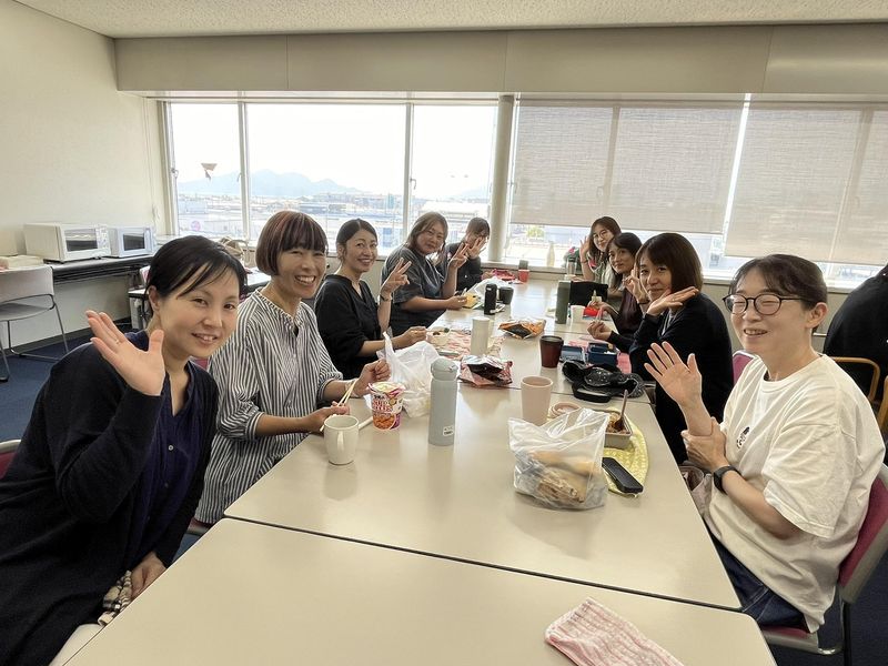 職場環境 お昼にはスタッフ皆でお昼ご飯を食べたりと、和気あいあいとした雰囲気です✨ 最初はわからなくて当然なので、先輩が丁寧に教えてくれる環境を作っています!