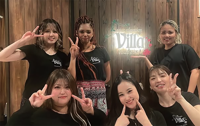アピールポイント: 【頑張りが直結!高還元インセンティブ】 基本給に加え、指名料のバックや個人売上に応じた歩合給(インセンティブ)を支給。 「頑張った分だけしっかり稼げる」給与体系が魅力です。 入社1年目で月収350万円以上も目指せます。 【入社祝い金支給】 入社祝い金8万円を支給(規定あり) これからこの世界へ飛び込む方も、経験者の方にも、 今後のスキルアップに向けた資金をご用しています。 【未経験からプロのセラピストへ】 全国の店舗9割以上のスタッフが未経験スタート! 充実した研修制度があり、座学から実技まで基礎からしっかり学べます。 一生モノの「タイ古式マッサージ」「バリ式リンパマッサージ」の技術を働きながら習得できます。 研修費用は無料!研修中の給料も支給! 【おしゃれなアジアンリゾート空間】 一歩足を踏み入れると、そこはまるで海外のリゾートホテル。 こだわりのインテリアと心地よい香りに包まれた空間で、 お客様だけでなくスタッフ自身もリラックスしながら働けます。 【ノルマなし!お客様に向き合える】 無理な勧誘や物販のノルマはありません。 「どうすればお客様に喜んでもらえるか」だけを考え、心を込めた施術に集中できる環境です。 【完全個室で安心の接客スタイル】 施術はすべて壁で仕切られた完全個室で行います。 周りの目を気にせず、お客様一人ひとりとじっくり向き合えるため、 落ち着いて接客がしたい方にピッタリです。 【自分らしく働ける髪型・ネイル自由】 清潔感があれば、髪色やネイル、ピアスも自由(規定あり)。 おしゃれを楽しみながら、あなたらしいスタイルで働けます。 【スタッフ同士の仲の良さが自慢】 20代〜30代を中心に活躍中。 面倒な派閥や上下関係はなく、施術の練習をし合ったり、 休憩中に盛り上がったりと、アットホームで風通しの良い職場です。 【目指すは全国No.1!チーム一丸となって成長できる】 現在は全国270店舗以上展開するvillaグループで、 3位の実績を持っていますが、私たちはそこで満足していません。 スタッフ全員で「全国1位」を本気で目指し、日々切磋琢磨しています。 高い目標があるからこそチームワークは抜群。 互いに技術を高め合い、励まし合いながら、やりがいを持って働ける職場です。