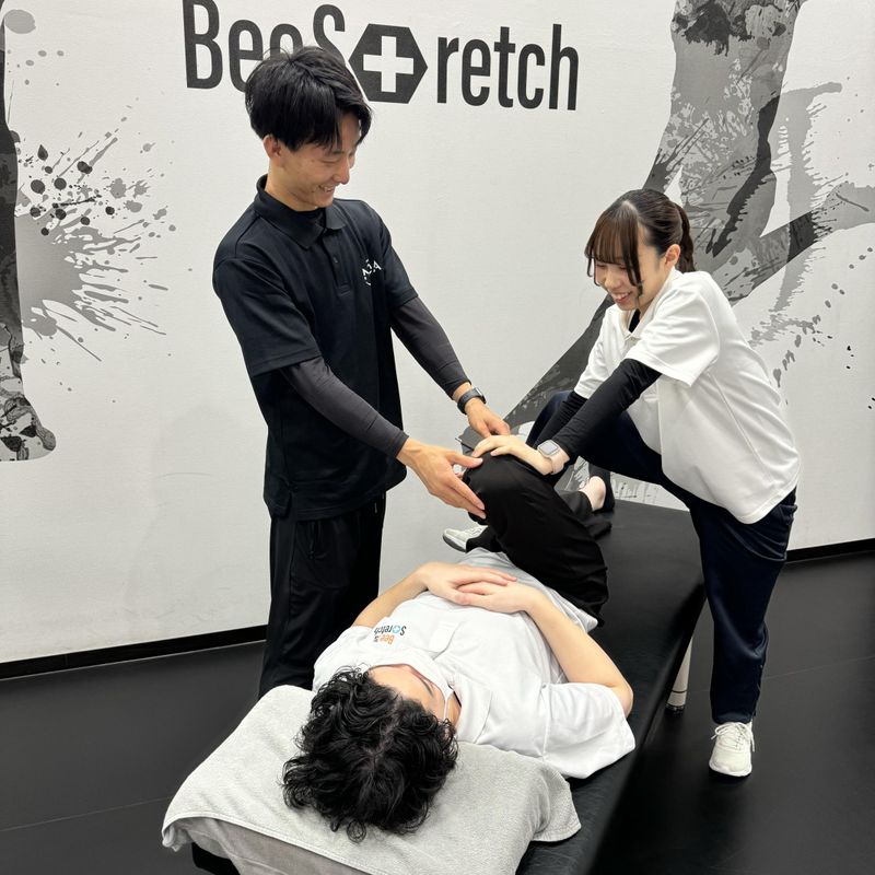 仕事内容 「身体を変える仕事」で \ 誰かの人生を変える。 / ✨学歴・経験不問 ✨未経験スタートも多数活躍中! ✨指名・売上での評価あり◎ 「肩こりや腰痛がつらい」 「身体が硬くて運動が続かない」 「健康で長く動ける身体をつくりたい」 そんなお客様の悩みに寄り添い、 身体の変化を一緒に喜べる仕事です。 ――――――――――――――+・:。・☆ ストレッチ専門店 BeeStretchでは、 お客様一人ひとりに合わせた パーソナルストレッチで 健康づくりをサポートしています。 「人の役に立つ仕事がしたい」 「身体に関わる仕事がしたい」 そんな想いを持った方を お待ちしています。 - ✅ BeeStretchとは - 私たちのミッションは 「人々の人生を豊かにする」 身体が変わると人生の行動量が変わります。 動ける身体は人生の可能性を広げます。 そのお手伝いをするのが BeeStretchの仕事です。 - ✅どんなお客様が来店されるの? - スポーツを楽しんでいる方から 仕事や家事を頑張る方まで 幅広いお客様が来店されます。 特に多いのは40〜50代のお客様。 例えば… ・肩こりや腰痛を改善したい ・身体を柔らかくしたい ・ケガを予防したい ・ゴルフの飛距離を伸ばしたい ・健康的にダイエットしたい など、目的はさまざま。 お客様の身体に寄り添い 「身体の変化」を一緒に作る仕事です。 - ✅ 具体的な仕事内容 - BeeStretchではマンツーマンの パーソナルストレッチを行います。 ▼カウンセリング お客様の身体のお悩みや目標を 丁寧にヒアリングします。 「どこがつらいのか」 「どんな身体になりたいのか」 を確認します。 ▼プランの提案 身体の状態をチェックし 最適なストレッチプランを提案します。 ▼施術(パーソナルストレッチ) トレーナーがサポートしながら身体の 可動域を広げるストレッチを行います。 施術後は 「肩が軽い!」 「腰が楽になった!」など、すぐに 変化を感じていただくことも多いです。 ▼アフターケア 自宅でできるセルフストレッチや 生活のアドバイスをお伝えします。 お客様がより健康な身体を 維持できるようサポートしていきます。 ※1日平均3〜4名ほど担当します。 ■店舗運営業務 ・受付対応 ・顧客管理 ・店内清掃 ・SNS更新 など - ✅ 未経験でも大丈夫? - 問題ありません。 現在活躍しているトレーナーの多くも 未経験からスタートしています。 入社後は ・筋肉や身体の構造 ・ストレッチ技術 ・カウンセリング方法 などを基礎から丁寧に研修します。 技術を身につけながら プロのトレーナーへ成長できます。 - ✅ この仕事のやりがい - BeeStretchの仕事は 「ありがとう」が直接届く仕事です。 施術後に 「身体が軽くなった!」 「本当に助かりました!」 と言っていただけることも多く さらに、 「また○○さんにお願いしたいです」 と指名をいただくこともあります。 自分の技術で人の身体が変わる。 そんなやりがいのある仕事です。 - ✅ 頑張りはしっかり評価 - BeeStretchでは ・指名数 ・売上 ・技術、知識力 などを評価し インセンティブ、ランクアップ、昇格 などにつながります。 努力が結果として返ってくる環境です。 - ✅ こんな方に向いています - ・人と関わる仕事が好き ・身体や健康に興味がある ・スポーツが好き ・人の役に立つ仕事がしたい ・成長できる仕事がしたい そんな方はきっとこの仕事に向いています。 - ✅ プロアスリートもサポート - BeeStretchでは ・名古屋ダイヤモンドドルフィンズ様 ・プロ総合格闘家 ・プロテニス選手 など、プロスポーツ選手の ストレッチサポートも行っています。 トップレベルの現場で求められる技術を 学びながら、お客様一人ひとりの 身体づくりをサポートできます。 ――――――――――――――+・:。・☆ ⭐最後に… 身体が変わると人の人生は変わります。 BeeStretchは身体を通して “人の人生を豊かにする”仕事です。 あなたも誰かの人生を変える仕事を 始めてみませんか?