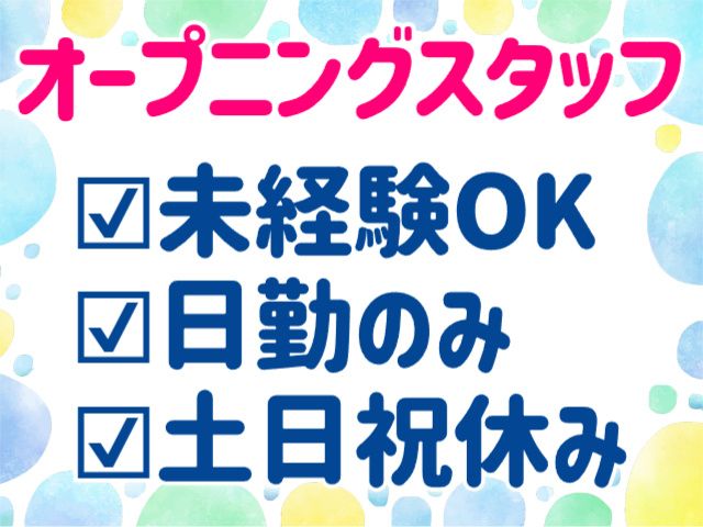 オープニングスタッフ/未経験OK/日勤/勤務時間選択可/土日祝休み/長期休みあり/週払い・仮払いあり