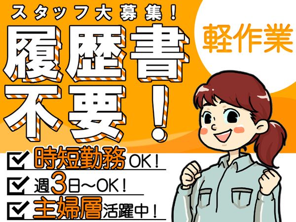 仕事内容 ・・・・・・・・・ \\履歴書不要!未経験・ブランクOK!// あなたの働き方に合わせて働ける! ・・・・・・・・・ 当社は大阪に本社を置く大手アパレル物流企業です 。 今回募集するのは、倉庫内での軽作業スタッフ。 皆さんが普段、百貨店や駅ビルなどで見かけるお洋服やバッグなどのアパレル商品のピッキングや検品、仕分けなどを行っていただきます 。 商品は軽いものが中心なので、男女問わず無理なく働くことができます 。 【主なお仕事内容】 ピッキング 指示書に基づき、必要な商品を倉庫から集めます。 検品 集めた商品に汚れや傷がないか、数に間違いがないかなどをチェックします。 仕分け 検品後の商品を、指定された場所や配送先ごとに分類します。 値付け作業 商品に値札などを取り付ける作業もあります。 箱詰め・出荷準備 検品・仕分けが終わった商品を箱に詰め、出荷のための準備を行います。 これらの業務は比較的簡単な作業がメインなので、倉庫作業が初めての方や、ブランクがある方もご安心ください。 丁寧な研修とサポート体制があるので、すぐに慣れていただけます 。 また、これまで物流センターでピッキングや仕分けなどの軽作業をされていた方や、単発で倉庫作業の経験がある方にも最適な職場です。 これまでの経験を活かして、即戦力としてご活躍いただけます 。 ライフスタイルに合わせた柔軟な働き方  ̄ ̄ ̄ ̄ ̄ ̄ ̄ ̄ ̄ ̄ ̄ ̄ ̄ ̄ ̄ ̄ ̄ ̄ ̄ 「扶養の範囲内で働きたい」という主婦・主夫の方や、Wワークを考えている方におすすめです 。 週3日からの勤務が可能で、1日6時間以内のシフトも選択できます 。 子育てが落ち着いてゆっくり仕事復帰したい方、家事の時間を大切にしたい方など、それぞれの希望に合わせて無理なく働ける環境が整っています 。 また、ご家族の体調不良など、予期せぬお休みや早退にも柔軟に対応できるのも、当社の好評の理由の一つです 。 応募もカンタン!即日勤務も可能!  ̄ ̄ ̄ ̄ ̄ ̄ ̄ ̄ ̄ ̄ ̄ ̄ ̄ ̄ ̄ ̄ ̄ ̄ ̄ ご興味をお持ちいただけましたら、ぜひお気軽にご応募ください。 履歴書をご準備いただく必要はありません 。 面接時に簡単なヒアリングシートにご記入いただくだけでOKです 。 即日勤務も可能ですので、すぐにお仕事を始めたい方も歓迎です 。 創業100年の安定企業!  ̄ ̄ ̄ ̄ ̄ ̄ ̄ ̄ ̄ ̄ ̄ ̄ ̄ ̄ ̄ ̄ ̄ 弊社はアパレル物流のパイオニアとして、もうすぐ創業100年になる安定した企業です! 「浪速」と聞くと、大阪を思い浮かべるかと思いますが、東京をはじめ千葉、神奈川など国内外に40以上の拠点を構えています。 長く安心してお仕事をしたいという方にはおすすめです!