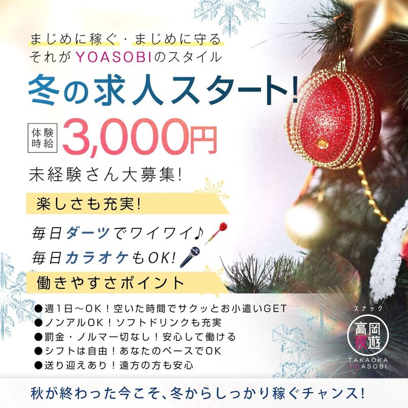 体験時給3,000円、OPEN以降好評につき、新スタッフ募集!時給2,000円から3,000円+歩合&全額日払い♪