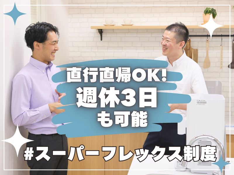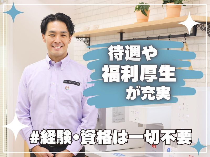 仕事内容 / 働き方の概念が変わる!? ストレスフリーで 自由な働き方を.・☆* \ . 業績好調!! 営業スタッフ増員募集♪ . ================= この求人のポイント♪ ================= ◆経験・スキル不問! <普通免許があればOK>です☆ ◆年間休日<120日以上!> ◆未経験も安心の<サポート体制完備♪> ◆<スーパーフレックス制>で 理想の働き方が実現♪ ◆ノルマはありません!! . . ================= 仕事内容はこちら! ================= . ✅サーバーメンテナンス  ̄ ̄ ̄ ̄ ̄ ̄ ̄ ̄ ̄ ̄ ̄ ̄ フィルター交換や作動チェックなど 既存のお客様先にて メンテナンスを行います! 1件40分ほどの時間が掛かるので お客様とのお話しを楽しみながら 作業をお願いします♪ 設置から修理まで、やり方は 研修でしっかりレクチャー! . ✅新規顧客対応  ̄ ̄ ̄ ̄ ̄ ̄ ̄ ̄ 電話やSNSからお問合せいただいた 新期のお客様先にて、 お客様の要望をヒアリングし 最適な機種のご案内を行います! . ✅設置・交換・撤去  ̄ ̄ ̄ ̄ ̄ ̄ ̄ ̄ ̄ ̄ ご契約されたお客様先にて ウォータースタンドの設置を行います! . . もちろん、 社用車や制服 タブレットや携帯電話などの 業務に必要なものは貸与! 設置方法や お手入れ方法のご説明などは 入社後にしっかり研修を行うので どなたもご安心くださいね♪ . . ================= 安心の<サポート体制!> ================= ◆入社後、まずは座学研修で 商品知識や訪問マナーなどを 基礎から丁寧にレクチャーします! . ◆座学研修後は、OJT研修で 先輩に同行し実際の現場を 学んでいただきます! . ◆独り立ち後も 階層別の勉強会や研修を実施♪ . 更に・・ 週に一度、 上長との面談を設けています。 ◎実務上のトラブル解決方法 ◎アドバイス・フォロー などなど・・ 些細なことから 相談できる環境が整っています♪ 安心してご応募ください☆ . . ============== <直行直帰>可能! ============== ご自宅から直接 お客様先へ訪問をし、 そのまま直帰OK! 勤務時間や休日は 自分で決められるので 週休3日の働き方も◎ フレックスタイム制ならではの 働き方が実現可能です♪ あなたが「働きやすい!」と思える ワークライフを見つけていきましょう! . . ============== 1日のスケジュール例 ============== 9時 自宅から出発! メンテナンスで3件訪問 12時 ランチタイム♪ 13時 新規のお客様先へ! しっかりヒアリングし、 お客様に合った機種をご案内♪ 15時 設置作業で2件訪問 17時 自宅へ直帰♪お疲れ様でした! . あるスタッフの1日の例ですが 上記のような働き方が可能です♪ . . =============== ウォータースタンドについて =============== 当社は、 「 2030年までに日本の 使い捨てプラスチックボトルを 30億本減らします。 」 というミッションを掲げ マイボトルを携帯する 新しい文化を創り、 気候変動とプラスチックによる 環境問題改善に取り組んでいます! . 一般のお客様だけでなく 官公庁や公共施設、 企業などのお客様からも 幅広く支持いただいております♪ このような信頼のもと 事業は右肩上がりで成長中! . ☆SNSでも話題のウォータースタンド☆  ̄ ̄ ̄ ̄ ̄ ̄ ̄ ̄ ̄ ̄ ̄ ̄ ̄ ̄ ̄ ̄ ̄ ̄ . // あなたのご応募を お待ちしております! \\