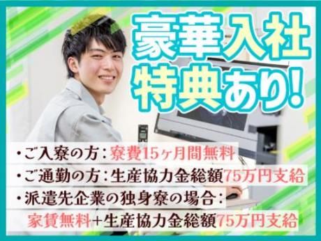 <月収37.8万円以上可能>大手企業☆寮費無料・総額75万円の祝金ありなど入社特典充実!即入寮OK!