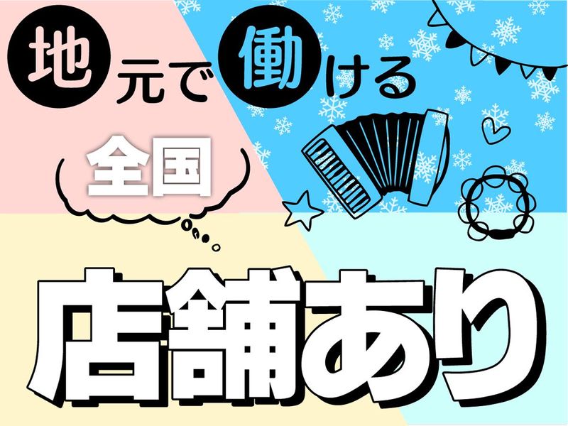 求めている人材 ・高校卒以上 ・遅番勤務、土日勤務が可能な方 ・基本的なパソコン操作ができる方(Excel&Word入力操作) <こんな方歓迎!> ・接客業の経験がある方 ・音楽が好きな方 ●音楽や楽器に関わるお仕事に ご興味のある方 ●ブランクのある方 ●長期で働きたい方 ●子育てが落ちついたタイミングで 働かれている方多数活躍中