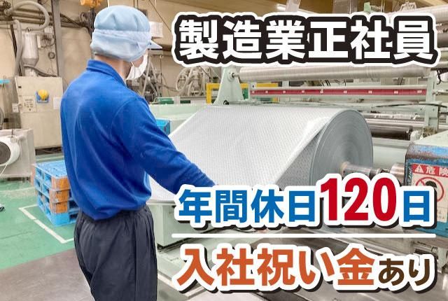 土日休み&年間休日120日 待遇充実◎入社祝金あり!暮らしを支える包装メーカー 加工スタッフ 薬も、食品も、日用品も、 私たちが快適に使えているのは“包装”されているから! “当たり前にあるけどすごい”そんな製品の 製造に関わってみませんか! 創立以来、包装専門メーカーとして社会に貢献しています◎ \技術を引き継ぎ将来をになうメンバーを大募集/ 「イチからチャレンジしたい」 「プライベートも大事にしたい」 「福利厚生がととのった会社で働きたい」 そんな方からのチャレンジ歓迎♪ □土日休み!長期休暇充実! □資格取得支援有(玉掛け、クレーン、フォーク) □男性の育児休暇取得実績有 □社員食堂…1食実質160円♪