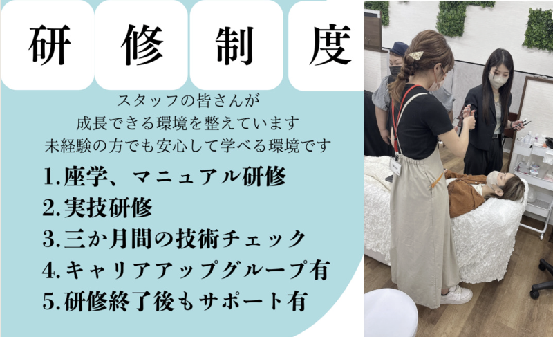 アピールポイント: 【一宮市 平和_正社員】アイリスト募集✨ 「休みや給料が安定した環境で働きたい」 「20代や30代が活躍できる職場がいい」 「一生モノの技術を身につけたい!」 そんなあなたにピッタリの【アイリスト】のお仕事です。 \まずは『メリハリつけて働きたい』だけでOK!/ 全国に展開する安定基盤のもと、 未経験からでも安心してスキルを磨きながら、 ワークライフバランスを大切に働けます。 ⭐KATEstageLASHアイラッシュサロンが選ばれる理由 ✅ ノルマなし×原則残業なし サロン全体で「ノー残業」を推奨! ストレスフリーな働き方を実現できます。 ✅ 完全週休2日制 (前日希望休100%取得) 土日休みや平日休みなどライフスタイルに合わせて調整可能。 有給平均消化率も高く、プライベートも充実! ✅ キャリアと私生活の両立 アイリストとしての技術習得だけでなく、 店長・スクール講師・教育担当などのキャリアステップも可能。 ✅ 自由度の高い働き方 お客様に寄り添う接客スタイルを大切にしているため、 無理な営業や押し売りは一切なし! ⸻ 【具体的なお仕事】 ・まつげエクステ、まつげパーマ、アイブロウ施術 ・お客様とのカウンセリング(仕上がりのイメージ共有) *幅広い技術を習得可能! まつげだけでなくアイブロウ、まつげパーマなど、 トータルビューティー技術を学べます。 *未経験でも安心研修制度あり 研修は最短2週間でデビュー可能! 半数以上が未経験からスタートし、今では即戦力として活躍中です。 ⸻ 【キャリアアップ例】 ・入社時:技術研修&接客の基礎を習得 ・1年目:後輩指導や店舗運営補助を担当 ・2年目以降:店長やスクール講師として教育担当も可能 <評価制度> ・売上や指名数だけでなく、日々の行動やプロセスもきちんと評価! ⸻ 【先輩インタビュー】 「前職はアパレルでした。未経験からの挑戦でしたが、研修が充実していて安心してデビューできました。お客様に喜んでもらえる瞬間が一番のやりがいです!」 「前職は美容部員。ノルマが多く、働き方に悩んでいました。KATEstageLASHではノルマがなく、シフトも柔軟。自分の時間を大切にしながら、キャリアアップも目指せています!」 ⸻ 【KATEstageLASHの魅力】 ・未経験からでもしっかり学べる研修制度 ・働きやすい雰囲気の職場 ・完全週休2日&残業なし ⸻ 【勤務の詳細】 ・勤務地:各店舗 ・勤務形態:シフト制 ・車通勤可能 ⸻ 「アイリストとして手に職をつけたい」 「プライベートも大切にしたい」 「将来キャリアアップを目指したい」 そんなあなたにぴったりの職場です✨ 未経験の方も大歓迎! ぜひ挑戦してみませんか?