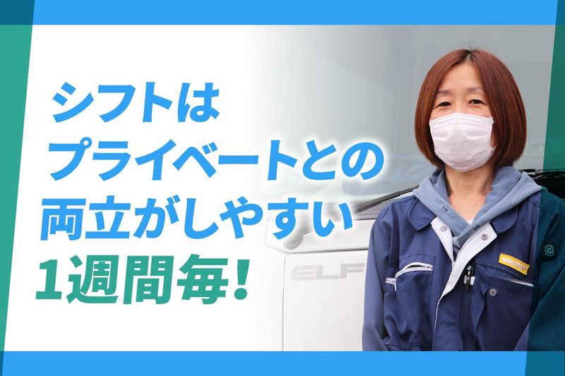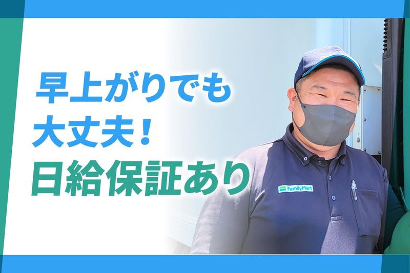 求めている人材 【必須】中型免許 ・平成19年6月1日までに 取得した普通免許 ・準中型免許(5t限定解除) でも応募可能です。 ※いずれかの免許必須 安定して長く働きたい方や、 家庭・副業と両立して 稼ぎたい方に選ばれています。 < 歓迎する条件 > ◆コンビニ・食品配送経験 ◆夜間ドライバー、ルート配送経験 ◆3tトラックの運転経験 ※コンビニ配送未経験の方も応募可! < こんな方に向いています > □週休2日で安定して 働ける仕事を探している □勤務日数をしっかり確保したい □毎回ルートが変わる配送ではなく、 固定ルートで働きたい □時間に追われすぎず、 落ち着いて仕事を進めたい □夜の時間を活かして収入を得たい □長く続けやすい仕事を探している ―――――――――――――――― ◆働く環境について◆ 現在は20代~40代を中心に、 幅広い年代のドライバーが在籍。 落ち着いた雰囲気の中で 業務に集中しやすい環境です。 配送を終えて営業所に戻ると、 自然と声をかけ合う場面もあり、 気を使いすぎず働ける職場です。 年齢の条件と理由:あり(例外事由1号・65歳未満(定年のため))