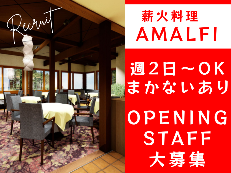 仕事内容 ⭐ 2026年4月中旬OPEN ⭐ ⭐⭐オープニングスタッフ大募集⭐⭐ ⭐ みんな一緒のスタートです ⭐ ✅履歴書不要 ✅交通費全額支給 ✅まかないあり ✅家事やプライベートと調整しやすい◎ ✅WワークOK ✅未経験OK ー ✨鎌倉・雪ノ下に新店オープン✨ 薪火イタリアン 「薪火料理 アマルフィイ」 ホールスタッフ大募集 ー 【お仕事内容】 基本的な接客対応および開店・閉店準備など。 お客様のご案内やオーダー、料理提供、レジ対応など。 飲食未経験・業界未経験の方も大歓迎★ しっかりとサポート致しますので、安心して下さいね! ✨ 働きやすさの理由はココ! ✨ ◆ 未経験の方も安心スタート ◆ 飲食店でのお仕事が初めてでも大丈夫! 業務は一つひとつ丁寧にお教えします。 慣れるまでは先輩スタッフや店長がしっかりサポート◎ 「これってどうするの?」 「少し不安かも…」 そんな時も、すぐに聞ける環境なので安心して働けます。 ◆ 充実の福利厚生が嬉しい ◆ 勤務日はまかない1食300円で利用OK! しっかり食べて、元気に働けます♪ さらに、当社が運営するグループ店舗の割引制度もあり! 一人暮らしの方や、外食が好きな方にも嬉しい特典です。 ー <お店について> 竹林に囲まれた山あいの広大な敷地(450坪)に、新店舗が4月中旬にオープン。 鎌倉らしい落ち着いたロケーションで、上質な料理と心地よい時間を提供する“新しい食の空間”を目指します。 今回はオープニングメンバーとして、立ち上げ段階から関われる貴重なタイミングでの募集です。 飲食未経験の方も歓迎。接客や調理補助を通して基礎から学べます。 薪火を活かしたメニュー開発を軸に、素材の持ち味を最大限に引き出す料理を提供。 前菜からメイン、デザートまで一貫した世界観を大切にしています。 火入れの技術だけでなく、お客様の記憶に残る「体験」としての料理や、心地よい空間づくり・おもてなしの考え方まで学べる環境です。 空間演出や店舗づくりにアイデアを出せるチャンスもあり、やりがいのあるお仕事です。 鎌倉・雪ノ下から新しい価値を発信するお店で、一緒にスタートしませんか。 ー <創業50年を越えた老舗企業> 鎌倉・湘南・丸の内・横浜・千葉などに多彩なブランドを展開! リストランテ・トラットリア・カフェ・和食・トンカツ・鉄板焼き・ハンバーグ店・うなぎ店など… コンセプトの違う様々なお店を運営しています。 会社全体で、社員100名・アルバイト350名を超える規模の50年以上の歴史ある会社です。 当社が展開する店舗の魅力は、温かくアットホームな雰囲気だということ。 一人ひとりの個性を大切にしながら、全員が安心して続けられる環境を整備しています。 人柄を重視した採用を行っているため、明るくフレンドリーなスタッフが揃っています。