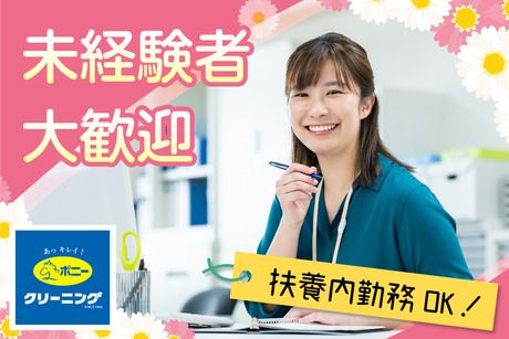 仕事内容 お任せする業務について 社内の店舗スタッフさんからのお問い合わせ対応をお願いします。 店舗勤務の研修を経て、実務に入っていただくのでご安心ください! 具体的には、、、 ■お問い合わせ対応 店舗で働くアルバイトスタッフさんからの質問や相談の対応。 例えば、「この素材の服にはどんな加工が可能ですか?」 「お客様からの質問の回答に困っていて、、」などお問い合わせがあった際に、 マニュアルや先輩スタッフに確認を取りながらお答えをお願いします。 お問い合わせはすべて社内スタッフからの連絡のため、焦る必要やトラブル対応の心配はございません! ■事務作業 相談が無い時間帯は、入力作業や書類の整理のサポートをお願いします。 本社からポニークリーニングの運営をささえる業務をお願いします♪ 未経験でも大丈夫な理由とは? 素材について、お客様対応について相談がありますが、 クリーニングの知識が無くても問題有りません。 オペレーター業務に入っていただく前に、 実際の店舗で約2カ月ほど研修を実施いたします。 実際の現場を通じて、学んでいただくことが可能です。 また、業務時間内に研修や自主学習の時間も取れるので、 店舗研修で理解しきれなかった部分もサポートいたします。 社内には先輩スタッフがいますので、 マニュアルを見たり、先輩に聞きながら対応をお願いします♪ 具体的な研修内容について 最初は、店舗実習に2か月ほど入っていただきます! お住まいや通いやすいエリアの店舗を面接時や入社後に相談して決めていきますので、 研修エリアについてもお気軽にご相談ください。 また、本社での座学研修も実施いたします。 もちろん、勤務時間内での実施となります。 <研修内容一例> ──────── (1)新人研修 (2)接客基礎研修 (3)着物毛皮研修 (4)接客スキルUP研修 (5)接客マナー研修 (6)加工おすすめ研修 (7)ファイナル研修 オペレーターとしての業務についても、 基本2名体制を予定していますので、 分からないことはすぐに聞ける環境です◎