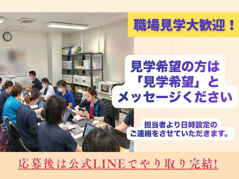 選考プロセス 【応募後の流れ】 ・ご応募後、担当者よりご連絡いたします ・面接は1回のみです ・面接では、これまでのご経験や働き方のご希望などをお伺いします ※堅苦しい面接ではありません。 リラックスしてお話しください。 【選考について】 ・職場見学のみも可能です (見学後に応募をご検討いただけます) ・年齢や経験に関わらず、人柄を重視した採用を行っています ・すぐに勤務開始できない方も、入職時期はご相談ください ☆ご応募後のご連絡は、お電話または公式LINEでのやりとりが可能です。 ☆見学のご予約や、ちょっとしたご質問だけでも公式LINEからお気軽にご連絡ください。