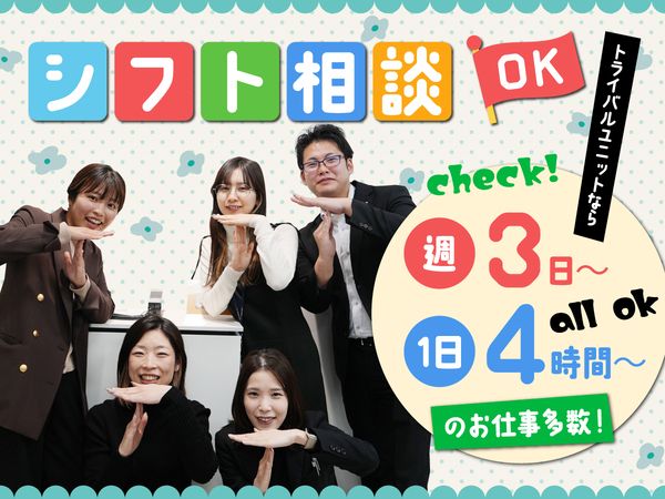 選考フロー ー \スピード就業!最短2~3日でお仕事スタート♪/ ▼応募からの流れ▼ STEP1:WEBまたは電話で応募 ・WEB応募:24時間受付中! ・電話応募:050-5784-7885または011-804-5761(採用担当) ・受付時間:平日10:00~19:00 STEP2:面談日の調整 ・応募後、採用担当からお電話でご連絡し、面談日を決定します。 STEP3:面談 ・コーディネーターが、あなたの希望条件やスキルを丁寧にヒアリングします。 STEP4:面接 ・紹介先の企業と面接を行っていただきます。 ざっくばらんにお話しできる場にしたいと考えておりますので、リラックスしてお越しください! STEP5:お仕事決定! ▼応募のポイント▼ ・履歴書不要! ・お友達同士の応募も大歓迎! ー