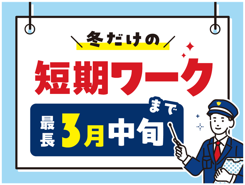 仕事内容 <2026年2月スタートの短期ワーク> 未経験OKの『駐車場警備員』! *即日払いOK(当社規定有) *3月中旬まで&日勤のみ *時給1200円!友達と応募もOK *未経験も安心の研修あり *60代以上も多数在籍中 【仕事内容】 豊平区の駐車場にて、一般車両が安全に出入りできるよう誘導していただくお仕事です。 ~具体的には~ ・駐車場内での車両誘導 ・歩行者の安全確認とご案内 ・満車時の待機列の整理 など ~入社後の流れ~ 未経験も安心の法定研修あり。その後、約1ヶ月間はプラスワン体制で先輩がフォローします。(実地研修も実施) 【スマホ登録で即日給与受取が可能】 スマホアプリで登録すれば、働いたその日にコンビニで給与を受け取れる日払いシステムを完備!お財布がピンチの時も安心です。 【シニア世代も在籍中】 「定年後も社会と関わりたい」「お小遣いを稼ぎたい」など、理由や動機は何でもOK!再就職を応援します。 【冬限定!予定も立てやすい】 「冬にしっかり働いて、春~夏は趣味や他の仕事に専念」など、メリハリのある働き方が可能です。 【家賃2万円!個人寮完備】 家具家電付き&ネット無料の完全個室寮もあり!遠方の方のご応募にも対応しています。 【安心!東証上場グループ企業】 当社は東証スタンダード上場のKSSグループの一員!待遇やサポート体制も充実しています。長期勤務の相談もOK。