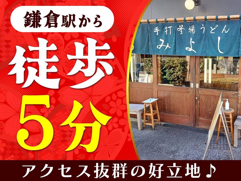 仕事内容 //////////////////////////////////// 今大注目の手打釜揚うどん店♪♪ 美味しい絶品まかないアリ! \✨月給34万8000円!✨/  ̄ ̄ ̄V ̄ ̄ ̄ ̄ ̄ ̄ ̄ ̄ ̄ ̄ ̄ (*'ω'*) >>飲食業未経験も大歓迎!<< //////////////////////////////////// 手打釜揚うどん(鎌倉みよし) ✅古都 鎌倉 小町通り 「こもれび禄岸」の中庭に面した、うどん専門店。 ✅観光客はもちろん、「鎌倉みよし」のうどんを目指して鎌倉に訪れるお客様で賑わう人気店。こだわりのうどんは、キリリと角が立ってツヤツヤ。うどんのコシを味わうならざるを、もちもちの食感を味わうなら釜揚げがおススメ! ✅美味しい絶品まかないも魅力♪ <お任せするお仕事は…> ⏩ホール業務全般 (お客様のご案内、料理・ドリンクの提供、 テーブルの片付け など) ⏩メインの調理 ⏩料理盛り付け ⏩メニューの作成 ⏩レジ ⏩売上の管理 ⏩シフトの調整、スタッフの管理 ⏩予約の管理 など 業務の流れはイチから丁寧にお教えします。 未経験でも安心してスタートできますよ! 経験者の方は優遇します! ✅こんな方にピッタリ♪  ̄ ̄ ̄ ̄ ̄ ̄ ̄ ̄ ̄ ̄ ̄ ̄ ̄ ̄ ̄ ̄ ̄ ・飲食店での経験を活かしたい方 ・料理好きの方 ・人と接する事が好きな方 ・リーダーシップのある方 ・正社員で安定して働きたい方 ✅頑張りをしっかり評価!  ̄ ̄ ̄ ̄ ̄ ̄ ̄ ̄ ̄ ̄ ̄ ̄ ̄ ̄ ̄ ̄ ̄ やる気や頑張りを正当に評価する システムが整っています! 頑張った分がしっかり評価に 反映されるので、ヤリガイを 感じながら働けますよ! ✅駅チカで通いやすい!  ̄ ̄ ̄ ̄ ̄ ̄ ̄ ̄ ̄ ̄ ̄ ̄ ̄ ̄ ̄ ̄ ̄ ̄ ■鎌倉駅~徒歩5分 ★アクセス抜群だから通勤便利です!