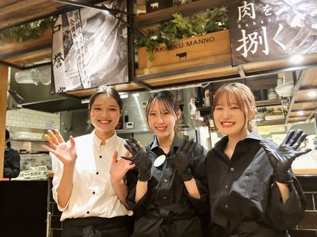 職場環境 【従業員構成】 ★未経験の方大歓迎!★ 聞き上手で優しい店長、社員や先輩スタッフがいるので 未経験でも安心して働けます! お肉の種類が分からなくても大丈夫◎ 先輩が「これがカルビだよ」など お肉のことから接客応対まで教えるので 少しずつ覚えていってくださいね。