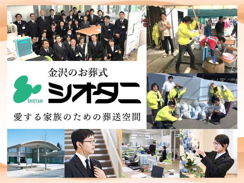 仕事内容 創業1913年! 地元金沢の老舗大手葬祭企業。 車両スタッフの正社員を募集します。 \このお仕事のアピールポイント/ ●夜間対応・当直待機なし。 ●分業制を導入し、働きやすい環境へ! ●金沢市内でもトップクラスの式場保有数。 ●婚礼・介護・飲食・納棺・ 運送・コールセンターなど、 幅広いグループ事業で将来性も◎ ==================== ●仕事内容 ご遺体の搬送に関する業務全般を 担当していただきます。 ※分業化に伴う新設部署での募集です。 ◆寝台車業務(昼間のみ) ・病院、施設、警察署などから 自宅・会館への搬送 ・ご安置・枕飾りの準備 ・会場・日程の調整 ◆霊柩車業務 ・葬儀会場から火葬場までの運転 (助手席にご遺族が同乗する場合もあり) ◆移動業務 ・お通夜前に、自宅や会館間でのご遺体移動 ※夜勤はありません。 ==================== ●1日のスケジュール例 07:45 出社・スケジュール確認・準備 08:30 車両点検・整備・洗車・乗車前確認 10:30 霊柩車運転(葬儀会館→火葬場) 12:00 昼食 13:00 搬送依頼準備 14:00 病院へお迎え・搬送 15:00 葬儀会館へご安置 16:00 ご遺族対応 (担当者到着までのご説明など) 16:45 日報作成・退勤 ※日によっては 通夜駐車係をお願いする場合もあります。 ==================== ●創業110年を超える安定企業! 事業拡大に伴う増員募集です。 現在の社員の多くが未経験スタート。 退職者はほとんどおらず、 10年以上活躍するスタッフも 多数在籍しています。 ==================== ●シオタニ株式会社について 石川県金沢市を中心に、 16の葬祭ホールを運営。 110年以上にわたり、地域密着型の 葬儀サービスを提供しています。 理念は「つながりの創造」。 一式一館の貸切制で、 1件1件の葬儀を心を込めて サポートしています。 お客様からの「ありがとう」の言葉が、 私たちの原動力です。 大切な方の旅立ちに寄り添い、 心を込めてサポートする—— そんな想いを共有できる方を お待ちしています。