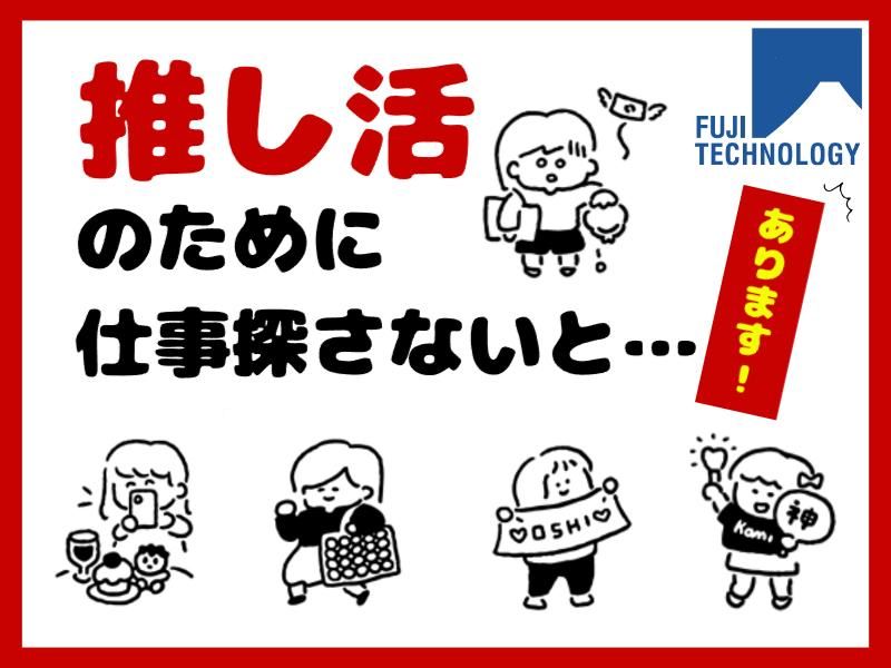 仕事内容 ☆☆ おすすめポイント ☆☆ ✅日勤のみで時給1300円スタート ✅土日休み+大型連休あり ✅決まった手順で行う作業だから 未経験でも覚えやすい _______________ 健康食品メーカーです 業績好調♪♪♪ 長期で安心してお仕事できます!  ̄V ̄ ̄ ̄ ̄ ̄ ̄ ̄ ̄ ̄ ̄ ̄ ̄ ̄ ̄ << 仕事内容 >> サンプル品の検査、材料の調合 結果の確認などをお願いします。 ▼具体的には… 1.指示されたリストを見ながら 棚から材料を準備 2.分量を量って調合 3.一定時間をおき、結果を確認 ※結果が出るまでの待ち時間で 他の試験も対応していきます。 ◎決まった工程があるので 未経験でも安心して始められます! / 富士テクノロジー株式会社です \ 2007年に派遣事業を始め、 三重・岐阜で地域に根差した会社です 地元だからサポートが丁寧で迅速 企業様とも良好な関係性が自慢! 入社するまで、で終わらない 入社してからのサポートが違います お仕事をお探しの方は ぜひお気軽にご相談ください