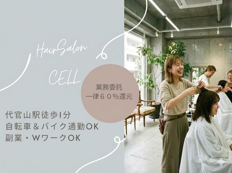 仕事内容 【美容師本来の楽しさと、高収入を両立しませんか?】 代官山駅から徒歩1分の好立地にある「CELL代官山」でのスタイリスト業務(業務委託)です。 当サロンの最大の特長は「スタイリストファースト」な還元体制です。 多くの業務委託サロンでは、歩合から「材料費」や「光熱費」が引かれますが、当店ではそれらをすべて会社が負担します。 【具体的なメリット】 ◆驚異の還元率: フリー・指名問わず売上の60%バック。 ◆自己負担ゼロ: 材料費、光熱費、カード決済手数料は会社が全額負担します。 ◆完全自由出勤: 週1日〜、1日数時間〜OK。Wワークや育児との両立も自由自在です。 ◆面倒な業務なし: ミーティング、後輩指導、レポート作成などはありません。お客様に向き合うことだけに集中できます。 ◆集客サポート:某予約・集客サイトも利用可能。集客面もサポート 【こんな方に最適です】 今のサロンの給与体系に疑問を感じている方 指名のお客様を大切にしながら、自分のペースで働きたい方 子育てや副業と両立しながら、美容師を続けたい方 使用する薬剤やメニュー設定も、あなたの得意なスタイルに合わせて相談可能です。「あなたの理想」をぜひここで叶えてください。 私たちは、スタイリスト一人ひとりの個性を最大限に尊重する、完全フリーランス制のサロンです。 あなたのこだわり(使いたい商材の相談、カラー技術)も大歓迎です。 まずはお気軽にご応募・見学をお待ちしております。 ■ 勤務地 店舗名:Hair Salon CELL 代官山 アクセス:代官山駅 徒歩1分、恵比寿駅 徒歩8分
