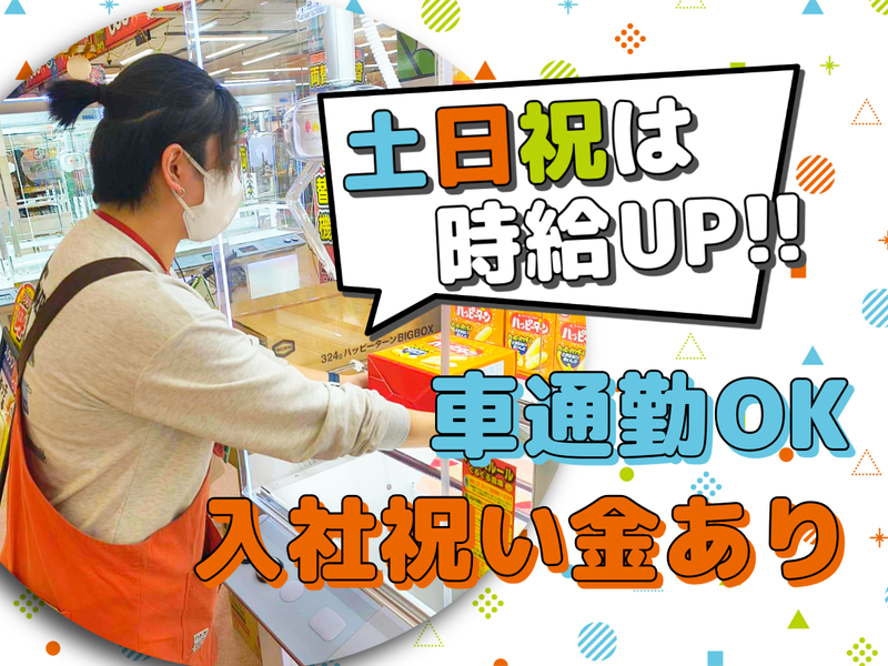 求めている人材 <学歴・経験は一切不問!> ✅未経験OK ✅経験不問 ✅学歴不問 ✅資格不問 ✅フリーター歓迎 ✅20代,30代,40代活躍中 ✅長期歓迎 ✅既卒・第二新卒歓迎 <こんな方にもオススメのお店です✨> ★クレーンゲームが好きな方 ★接客・販売の経験がある方 ★空いた時間を有効活用したい方 ★趣味を活かして働きたい方 ★正社員を目指している方