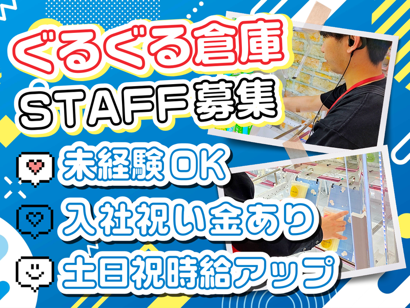 仕事内容 ぐるぐる倉庫で「好き」を仕事に♪ ◇━━━━━━━━━━━━━━━━━━ ⏩土日祝の勤務は時給50円アップ! ⏩正社員登用制度あり! ⏩入社祝い金3万円支給✨(勤続3ヶ月後) ━━━━━━━━━━━━━━━━━━◇ 【主な仕事内容】 ・お客様対応 ・景品の補充、設定 ・クレーンゲーム機の定期メンテナンス ・在庫の管理や整理 など ╭━━━━━━━━━━━━━╮ ✨正社員を目指すことも可能✨ ╰━v━━━━━━━━━━━╯ 自社の正社員登用制度あり! 「まずはバイトで慣れてから…」 「ぐるぐる倉庫の正社員になりたい!」 と検討中の方もお気軽に相談ください♪ ╭━━━━━━━━━━━━━━╮ ✨ぐるぐる倉庫はこんなところ✨ ╰━v━━━━━━━━━━━━╯ 「買います!売ります!楽しめます!」 のキャッチフレーズでおなじみ♪ おもちゃ・トレカ・ファッション・TVゲーム・ 本・家電・釣具・ブランド品などの 幅広い商品を取り扱う買取・販売店です。 熊本県内で現在4店舗を展開中! 興味のあるものや好きなものに囲まれて お仕事できますよ♪ ╭━━━━━━━━━━━━━━╮ ✨嬉しいスタッフ待遇多数あり✨ ╰━v━━━━━━━━━━━━╯ 💝ステップアップ時給制度 💝入社祝い金3万円(勤続3ヶ月後) 💝食事補助制度(当社規定による) 💝私服勤務OK