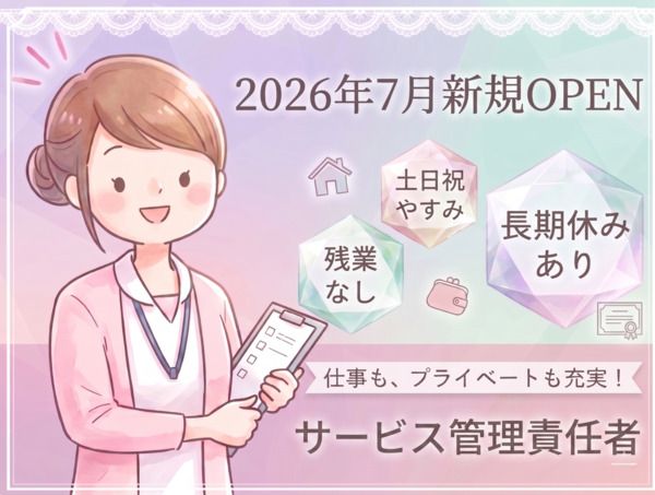 2026年7月新規OPEN障がい者施設の管理者兼サービス管理責任者! 土日祝日お休み◎特別賞与年最大3回!