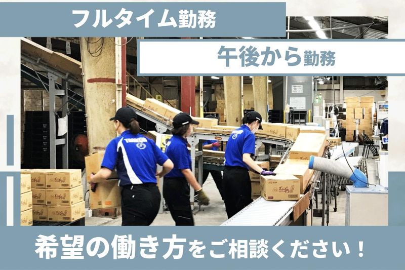 職場環境 扱うのは軽いお菓子中心で、未経験でもすぐに覚えられるシンプル作業。 現在は男性スタッフが多数活躍中で、協力し合える明るい雰囲気の職場です◎ フルタイムでガッツリ安定派の方も、短時間派の方も大歓迎します✨ 見学もOK!まずは雰囲気を見に来てください♪