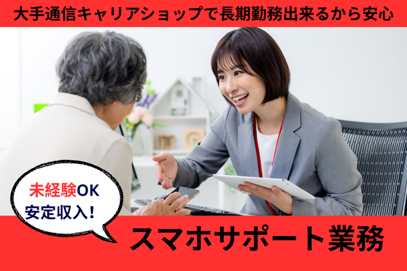 仕事内容 ✼••┈┈┈┈┈┈┈┈┈┈┈┈┈┈••✼ 【未経験でも安心のスマホ設定サポート】 【契約なしのシンプル作業で始めやすい】 ✼••┈┈┈┈┈┈┈┈┈┈┈┈┈┈••✼ ✅未経験OK・シンプル作業 ✅契約業務なしで安心スタート ✅シフト柔軟&残業ゼロ ✅直行直帰OK・高収入スタート スマホの初期設定や、契約済みサービスの 簡単なご案内をお任せします。複雑な契約 作業や書類対応は専門のスタッフが対応 するため、未経験でも始めやすいのが特徴。 20〜40代が中心で活躍しており、元飲食・ 販売など異業種からの転職者も多数。 研修で基礎から学べるため、「スマホは普 段使う程度」という方でも問題ありません。 困ったときは担当スタッフがLINEですぐ返 信してくれるなど、フォロー体制も万全。 働きやすさと収入のバランスが取れた環境 です。 <具体的には…> ◆スマホの初期設定サポート ◆アプリ・サービス案内 ◆基本操作の説明 ◆お困りごとのヒアリング ◆契約済み内容の確認とご説明 スタッフの声(20代・男性): 「最初はスマホ操作に詳しくなかったけど、 研修で基礎を教えてもらえるので安心。 “助かった!”と喜ばれることが多くて、 やりがいもあります。残業がなく、プライ ベートの時間が増えました!」 <1日の流れ(例)> 9:40 店舗へ直行・朝礼 10:00 案内・初期設定対応 13:00 休憩 14:00 お客様サポート業務 19:00 退勤→直帰OK この仕事のPOINT・・━━・・━━・・ ⭐【契約作業なしで始めやすい】 ・・━━・・━━・・━━・・━━・・━━・・ スマホの初期設定や基本操作の説明が中心 のため、複雑な書類作成や手続きの心配は 一切ありません。契約は別の担当者が行う ため、未経験の方でもスムーズにスタート できます。「スマホはよく使うけど詳しく ない…」という方でも安心。研修で操作方 法を一から身につけられ、お客様から直接 感謝をもらえるのも魅力です。 この仕事のPOINT・・━━・・━━・・ ⭐【残業ゼロで生活にゆとり】 ・・━━・・━━・・━━・・━━・・━━・・ シフト制で予定が立てやすく、基本的に残 業はありません。プライベートを優先した い方、メリハリをつけて働きたい方にも最 適。直行直帰もOKで、自由度の高い働き方 が可能です。仕事と私生活のバランスを大 切にしながら安定収入を得られます。 この仕事のPOINT・・━━・・━━・・ ⭐【未経験から高収入スタート】 ・・━━・・━━・・━━・・━━・・━━・・ 日給1万2000円スタートという高収入。 「経験がないと稼げない…」そんな不安は 不要です。実際に未経験入社のスタッフも 20〜30代を中心に多数活躍。研修+現場フ ォローで、自信を持ってお客様対応ができ るようになります。 この仕事のPOINT・・━━・・━━・・ ⭐【相談しやすいフォロー体制】 ・・━━・・━━・・━━・・━━・・━━・・ 現場で困ったときは、担当社員へLINEで即 相談可能。さらに定期的に巡回するラウン ド担当が、悩みや不安を直接ヒアリングし て解消してくれます。「一人で抱えない」 という文化が根付いた安心感のある職場で す。 ──────────────────── 【入社後の流れ】 ──────────────────── 入社後はスマホの基本操作、初期設定、説 明の仕方などを研修で習得。その後、店舗 で先輩と一緒に実務へ。困ったときは担当 者へLINEで相談できるため、不安を抱えた まま放置される心配はありません。 ──────────────────── 【キャリアパス・将来像】 ──────────────────── まずは初期設定スタッフとして経験を積み ながら、接客スキルやサービス理解を深め ます。希望次第で店舗リーダー、研修担当、 本部職などへのステップアップも可能。実 力と意欲がしっかり評価される環境です。 ──────────────────── 【採用担当者からのメッセージ】 ──────────────────── スマホが触れれば大丈夫。難しい業務はな く、万全のフォロー体制でお迎えします。 未経験の方も安心してご応募ください。