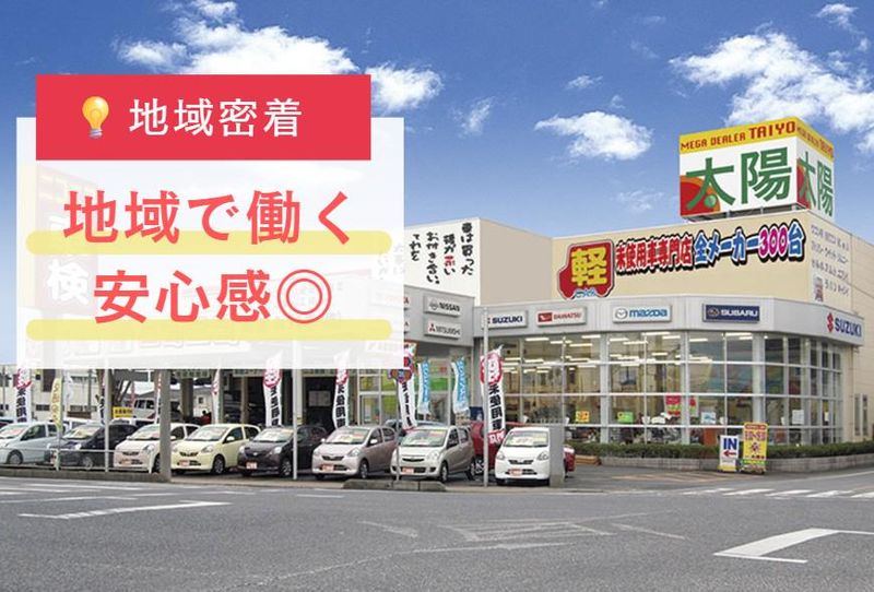 選考プロセス 電話またはWEBよりご応募ください。 <選考プロセス> 【1】応募 【2】書類選考 *WEB:応募レジュメで選考 *電話:下記住所へ履歴書(写貼)郵送 <郵送先> 〒373-0812 群馬県太田市東長岡町1786-4 【3】面接(WEB) 【4】面接(対面) 【5】内定! *面接日・入社日はご相談に応じます。 (入社日毎月あり!) *経験よりも「やる気」を重視! ざっくばらんにお話ししましょう。 *最短1~2週間で合否通知をします。 【問い合わせ先】 TEL:0276464171 【面接地・登録地】 太陽自動車株式会社 太田店 所在地:群馬県太田市東長岡町1786-4 担当者:採用担当 電話番号:0276464171 メールアドレス:taiyo_saiyou@e-kuruma.info