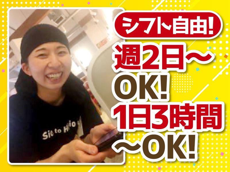 仕事内容 ●求人のおすすめポイント● ✅シフト自由!週2日以上、1日3時間~OK! ✅ランチ&深夜時給UP ✅扶養内勤務やWワーク歓迎! ✅学校や家庭との両立サポート! ✅車・バイク・自転車通勤OK(無料の駐車場あり) ✅髪色・髪型自由、ピアスok! ✅交通費支給、食事補助、社割あり! 💡11:30~13:30のランチの時間帯は 時給が100円UPとなり、1300円からのスタートです♪ 【お仕事内容】 オーダー確認、料理の提供、お会計、 片付け、清掃などをお願いします。 ◎ランチタイムは時給が100円アップ! ランチタイムや深夜帯に働ける方を大歓迎しています! ◎シフトは2週間ごとの申告制です! フルタイムで働きたい方も、 サクッとWワークを希望する方も、 自分のペースでシフトを組めます! ◎未経験歓迎! 初バイトの方も大歓迎! しっかりとした研修とマニュアルでサポートします! 優しい先輩ばかりなのでご安心ください! 経験者はスキルに応じて即昇給のチャンスもあります。 ◎お店の雰囲気は元気で、 お客様に笑顔を届けることを大切にしています。 スタッフ一同、楽しく働ける職場環境を作っています。
