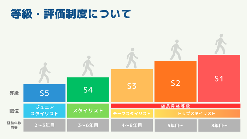 月給210,700円~309,000円 給与詳細 基本給:月給 21万700円 〜 30万9000円 固定残業代:なし 【一律手当】 全員に一律で支払われる通勤・皆勤・家族手当金額:なし 全員に一律で支払われるその他手当金額:なし ✅選考では技術試験も導入! 給与は経験・スキルを考慮して決定します◎ 【給与例】 給与例 【豊富なキャリアアップの機会】 「専門技術」のほか 一般業務やチームワークを重視した 評価基準をクリアすると キャリアアップのチャンスがあります。 ――――――――――――――――― 【年収例】 ✅スタイリスト(入社3年目) 月給23.3万円×12ヶ月+賞与 =年収約310万円 ✅チーフスタイリスト(入社5年目) 月給25.1万円×12ヶ月+賞与 =年収約334万円 ✅トップスタイリスト(店長) 月給30.9万円×12ヶ月+賞与 =年収約411万円