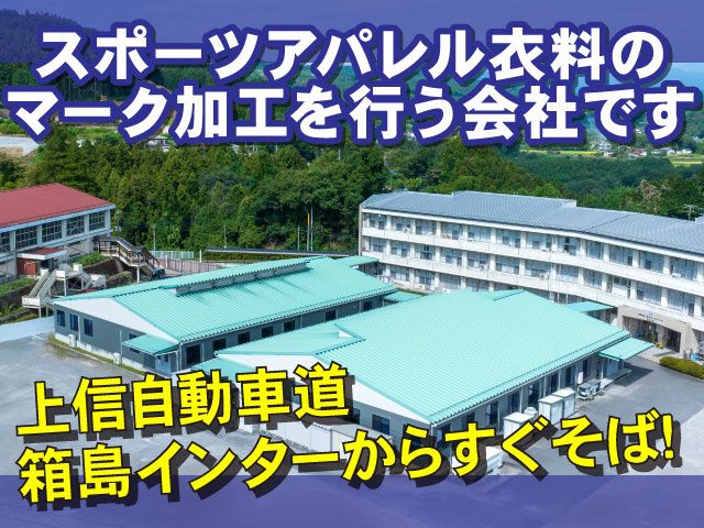 仕事内容 スポーツアパレル衣料のマーク加工を行う 「(株)エヌエスケーエコーマーク」よりスタッフ募集! 吾妻工場での工場内作業員のお仕事です! 上信自動車道箱島インターからすぐそばにあります。 服が好き!アパレル・服飾業界に興味がある! スポーツに関わりたい! そんな方にオススメの職場です! ▼工場内作業員(正社員)のオススメポイント▼ ○必要資格なし!未経験から始められる! ○人気の日勤! ○福利厚生も充実! ○昇給・賞与は年2回! ○『好き』を仕事にできる! <工場内作業員の仕事内容> 今回募集する職種は工場内作業員(正社員)です。 スポーツアパレル衣料のマーク加工に 関わる業務をお願いします。 詳しい作業内容・・・ ・倉庫内作業 ・仕分け ・検品作業 ・出荷 ・プリント加工 手作業でTシャツなどにインクを印刷する作業 ・圧着加工 熱と圧力によって専用のシートをTシャツの生地に貼り付ける機械作業 ・昇華転写加工 「転写紙」と「ポリエステル生地のTシャツ」を重ね、 熱と圧力を加えてインクを気化させ、繊維に浸透・染色させる機械作業 など多岐にわたる作業になります。 機械作業も複雑な操作はなく、 機械にセットしてボタンを押すような簡単な作業です! <無資格・未経験OK> 必要な資格、経験はありません! 先輩スタッフがしっかりとサポートいたします! <充実の福利厚生> スタッフに安心して、 快適に働いていただくために 福利厚生・待遇は充実させております! 腰を据えて長期で働いていただける環境です! <企業として成長中> 2025年2月に、小松マテーレ株式会社の グループ企業となりました! 今後も企業として成長を続けてまいります! 弊社は若手の育成にも力を入れております! キャリアアップを目指す方もぜひご応募ください。 <こんな方にオススメ> スポーツアパレル衣料のマーク加工に 関わる業務ですので、 手先が器用な方や、多岐にわたる業務を 効率を考えながらオールマイティに作業が出来る方、 集中して作業に取り組むのが好きな方にオススメです。 また、周りと協力しながら業務を行える方に向いております。 <様々な地域から通勤可能> 弊社は吾妻郡東吾妻町に位置していますが、 「遠いかも…」と心配する必要はありません。 弊社スタッフは、東吾妻郡はもとより、 様々な地域から通勤をしております。 近隣の中之条町、渋川市をはじめ、榛東村、吉岡町、 前橋市や高崎市といった主要都市からも 多くのスタッフが通勤しています! また、都市部から離れた場所に位置していますので、 朝の通勤時の混雑も少ないです。 <エヌエスケーエコーマークについて> 当社は1985年の創業以来、 スポーツ関連のマーク加工を核に成長してきました。 お客様との強い絆を大切に、 「加工技術を通じたスポーツ文化とビジネスの発展」を追求しています。 「顧客・従業員・企業満足」を理念に、 「スピード・サービス・スピリッツ」を方針とし、 企画・デザインからシルクスクリーン、刺繍、 昇華転写、縫製まで一貫した生産体制で、 高品質なマーク加工技術を提供。 IT投資による品質管理と業務最適化も推進し、 地球環境に優しい技術も追求しています。 これからも国内市場を軸に、 こだわりの加工技術で新たな市場を開拓し、 価値あるサービスを提供し続けます。 また、株式会社エヌエスケーエコーマークは、 2025年2月に、小松マテーレ株式会社による株式取得により、 同社のグループ企業となりました。 これにより、より強固な経営基盤のもと、 環境対応型製品の開発・提供をこれまで以上に推進してまいります。 採用に関するお問い合わせは 下記までお気軽にご連絡ください。 〇株式会社エヌエスケーエコーマーク TEL 0279-30-9550(採用担当) ご応募は応募フォームまたは お電話で受け付けております。 履歴書及び職務経歴書の郵送が必要になりますので 併せてご用意をお願いいたします。